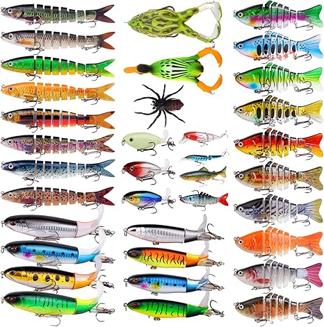 Let's See- Multi kinds of lures - This lures kit includes 36 kinds of fishing lures and a accessory kit, including multi-sections fish of different sizes and quantities, surface tractor baits with propeller tails, various soft baits such as frog, duck, spider, and lead coated fish, artificial luminous lure, suitable for Bass Pike Panfish Walleye Trout Crappie, different fishing purposes.